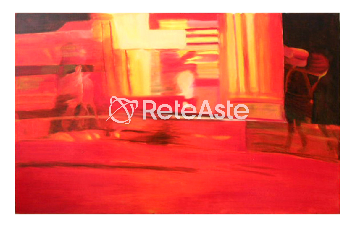艺术即将重回聚光灯下:一组艺术作品即将拍卖。如果您感兴趣,请写信至:staffvendite@astetraprivati.it 作品名称为“无题” - 油彩布面 - 尺寸60x80 - 创作年份2007 - 作者Angelo Salvatori 一场光影之游戏:红色环绕着整个场景,而两个人物浮现在橙色背景上,营造出神秘和深邃的感觉。