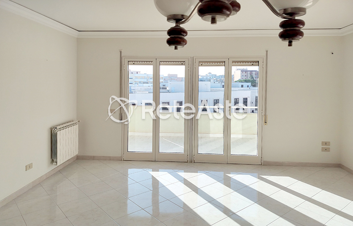 Appartamento al quarto piano di un edificio in via del Fante a Marsala, si compone di tre vani principali, una cucina abitabile, un bagno completo, un WC, un comodo ripostiglio e un disimpegno, oltre spazi esterni comprendono un balcone e una verandina.