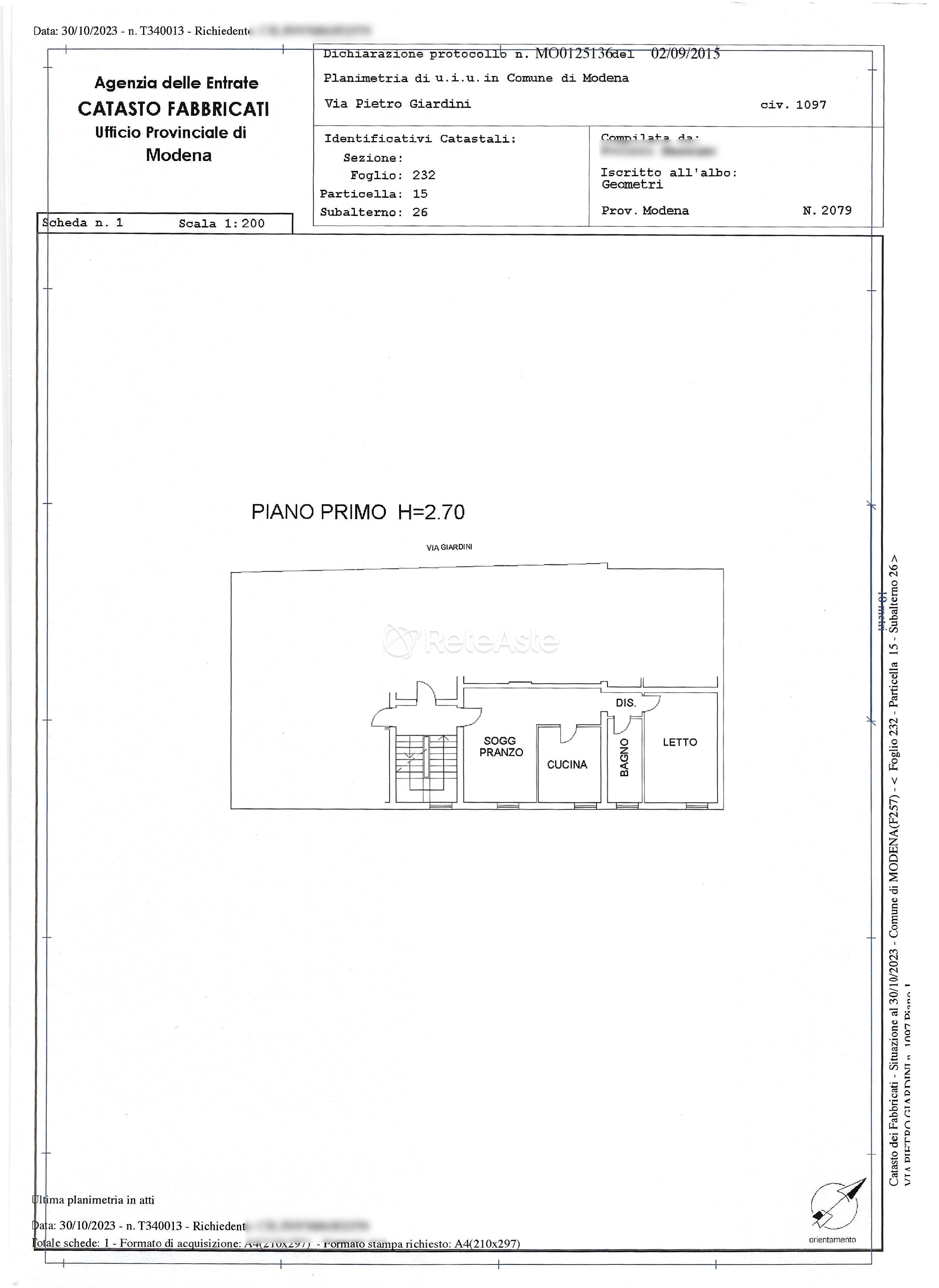 Tipo di catasto Fabbricati |