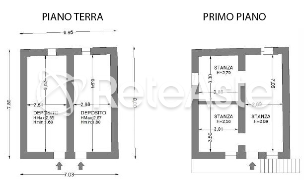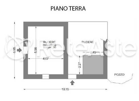 L'immobile si presenta in precarie condizioni strutturali e necessita di un intervento di ristrutturazione integrale. Al piano terra si trovano due locali con ingressi indipendenti, attualmente utilizzati come deposito, mentre al primo piano si accede tramite una scala esterna e un poggiolo in legno che conduce a tre stanze, dove è ancora presente una vecchia stufa a legna. Sebbene sia già attivo l'allacciamento alla corrente elettrica, l'edificio è privo di impianto di riscaldamento e fornitura idrica, con scarichi gestiti a dispersione. Completa la proprietà un piccolo spazio verde antistante il fabbricato.
