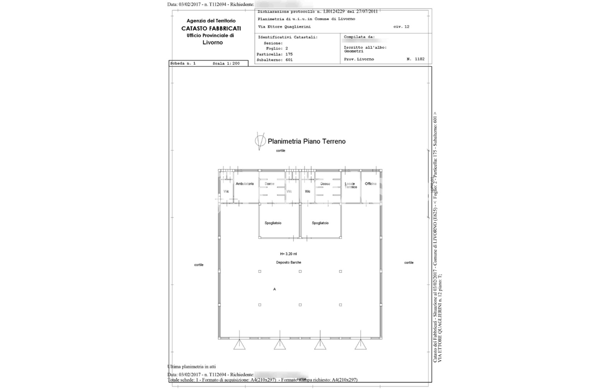 Sono inoltre presenti un locale ambulatorio, un locale officina ed un locale termico. La posizione lo rende adatto per il rimessaggio delle barche. Lo stato di manutenzione esterno è da ritenersi sufficiente.