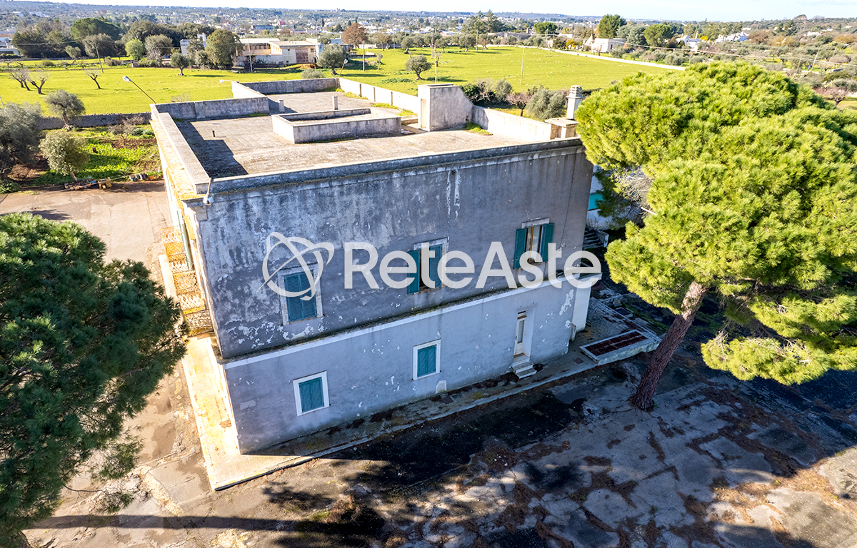 Imponente struttura immobiliare immersa nel verde delle campagne monopolitane, sviluppata su due livelli abitabili oltre a cantina e lastrico solare vantando una superficie coperta complessiva di mq 1.300 circa. L'edificio è circondato da un terreno di proprietà esclusiva di quasi 17.000 mq in gran parte destinato a mandorleto. L'immobile si presta ad essere riqualificata in struttura ricettiva, centro culturale o sociale, collegio, bed & breakfast o nuovo centro polifunzionale, anche per la vicinanza a servizi essenziali, scuole e attività commerciali ecc.