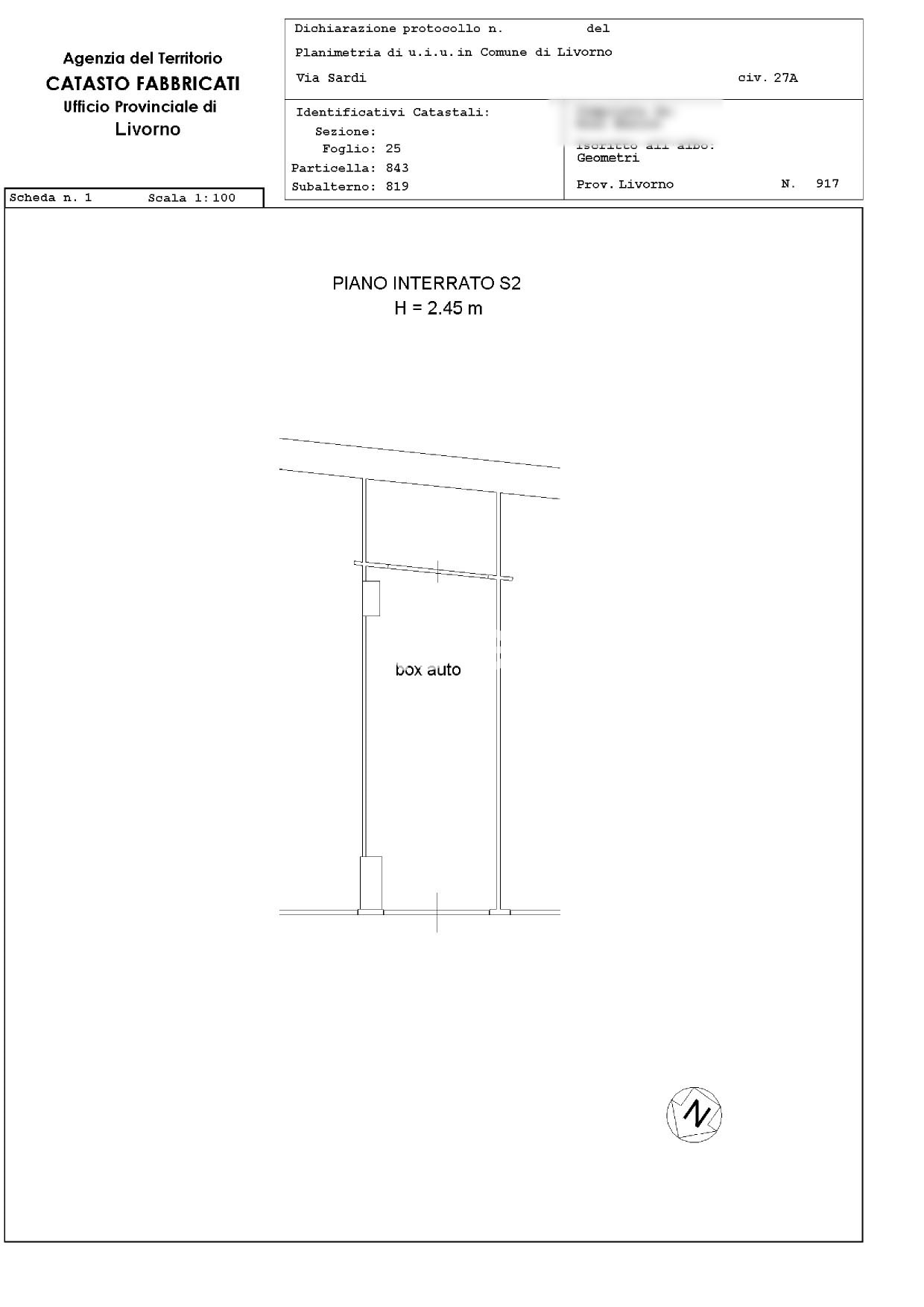Garage al piano seminterrato secondo di 28 metri quadri.