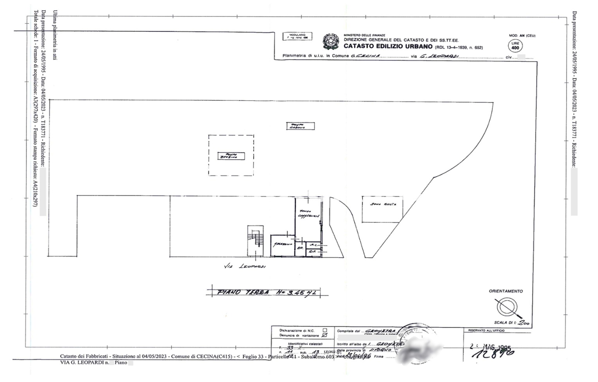 Stato di occupazione: è in essere regolare contratto di locazione con durata novennale decorrente dall’11/11/2012, con prossima scadenza al 10/11/2030, e canone annuo pari ad euro 44.469,73. Il conduttore ha diritto di prelazione in caso di vendita.
