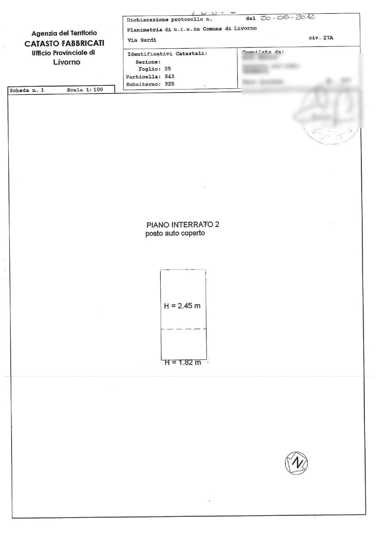 Posto auto al piano seminterrato secondo di 13 metri quadri.