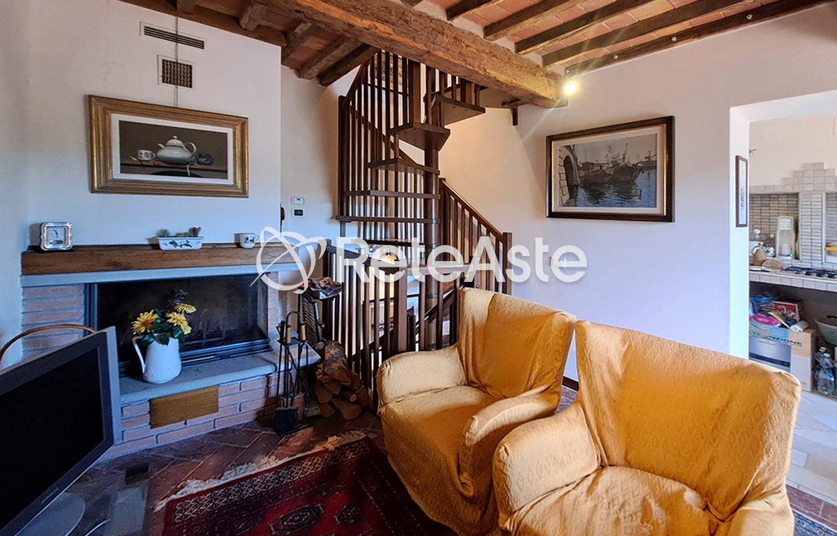 La proprietà si estende anche ai piani inferiori: al piano primo seminterrato, accessibile tramite scala interna, sono disposti locali di sgombero e un bagno. Scendendo ulteriormente, al piano secondo seminterrato, una piccola scala interna conduce a due locali ad uso cantina. L'appartamento è dotato di termocamino ad aria ed impianto idrico e elettrico.