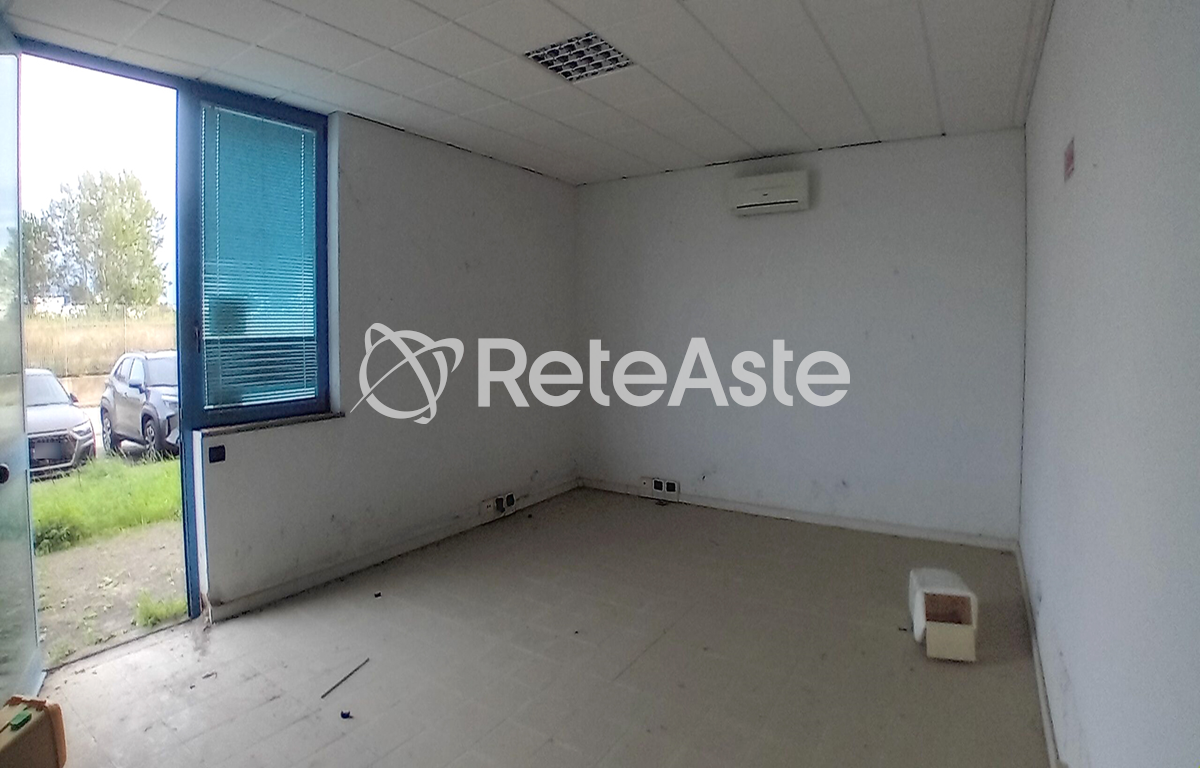Ufficio al piano terreno composto da unico vano con servizi igienici e antibagno per 140 mq oltre 6 posti auto di circa 11 metri quadri ciascuno.