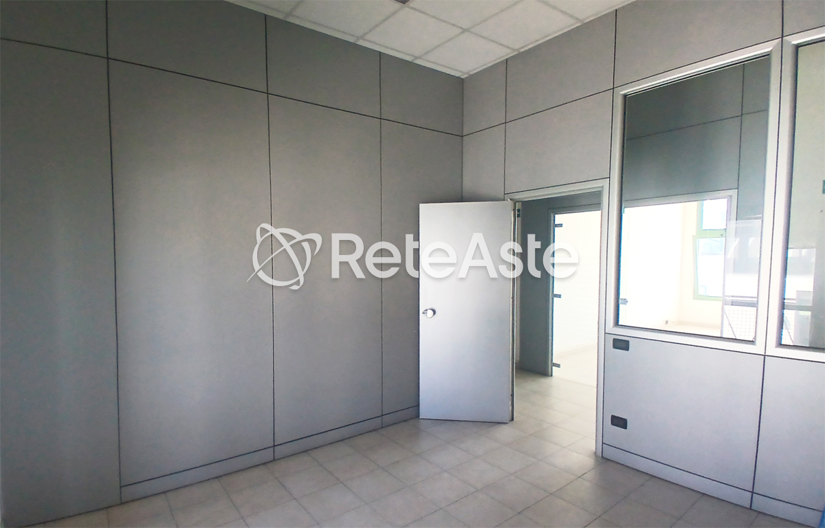All’interno, l’ufficio si presenta in buono stato: i locali hanno un’altezza di 3,20 metri, pavimenti in piastrelle chiare e controsoffitti modulari con illuminazione integrata. Le pareti divisorie, in parte con inserti in vetro satinato, permettono di adattare facilmente gli spazi a seconda delle esigenze lavorative.