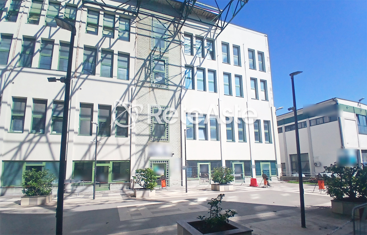 The building, with contemporary design, stands out for its light facades and large windows with green fixtures. It is served by an elevator and offers common areas such as a communal terrace and an internal courtyard, which contribute to improving the livability of the complex. Inside, the office is in good condition: the rooms have a height of 3.20 meters, light-colored tiled floors, and modular suspended ceilings with integrated lighting. The partition walls, partly with frosted glass inserts, allow for easy adaptation of spaces according to work needs.