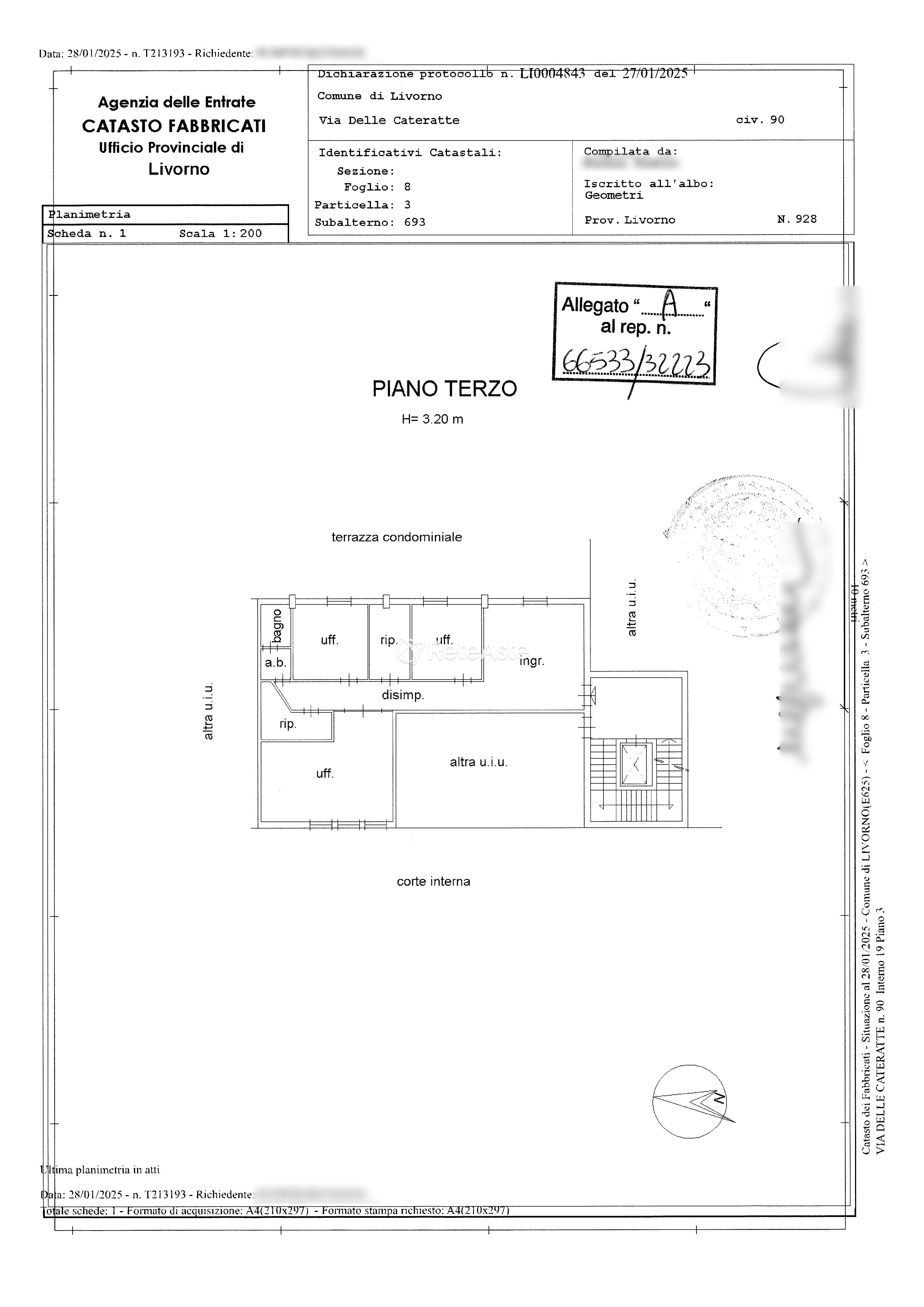 L’immobile, ben distribuito e funzionale, comprende ingresso, disimpegno, tre vani uso ufficio, due ripostigli e un servizio, per un totale di 4,5 vani catastali.